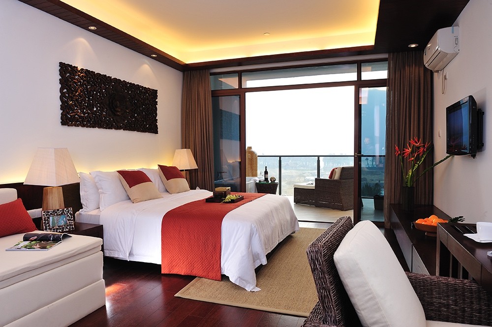 酒店雙子樓波浪的外觀造型和大海完美融合,目前共計有500多間客房。有雅致雙/大、海景雙/大、豪華海景雙/大、家庭房、豪華海景家庭套房、豪華行政海景套房等6種房型,客房的特色除了面積大、有陽臺、有浴缸、衛(wèi)生間干濕分離,就是5層以上每一間客房的陽臺都能看到博鰲的海岸線,性價比高。
