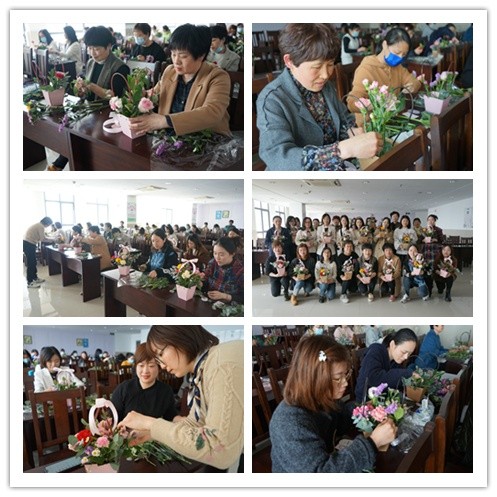 3月7日下午,集團婦女姐妹歡聚一堂,參加一年一度屬于“半邊天”們的專屬活動。今年的主題是“巾幗展芳華 花聚她力量”?;顒友埡幨泄と宋幕瘜m插花老師為大家授課,并作藝術指導。