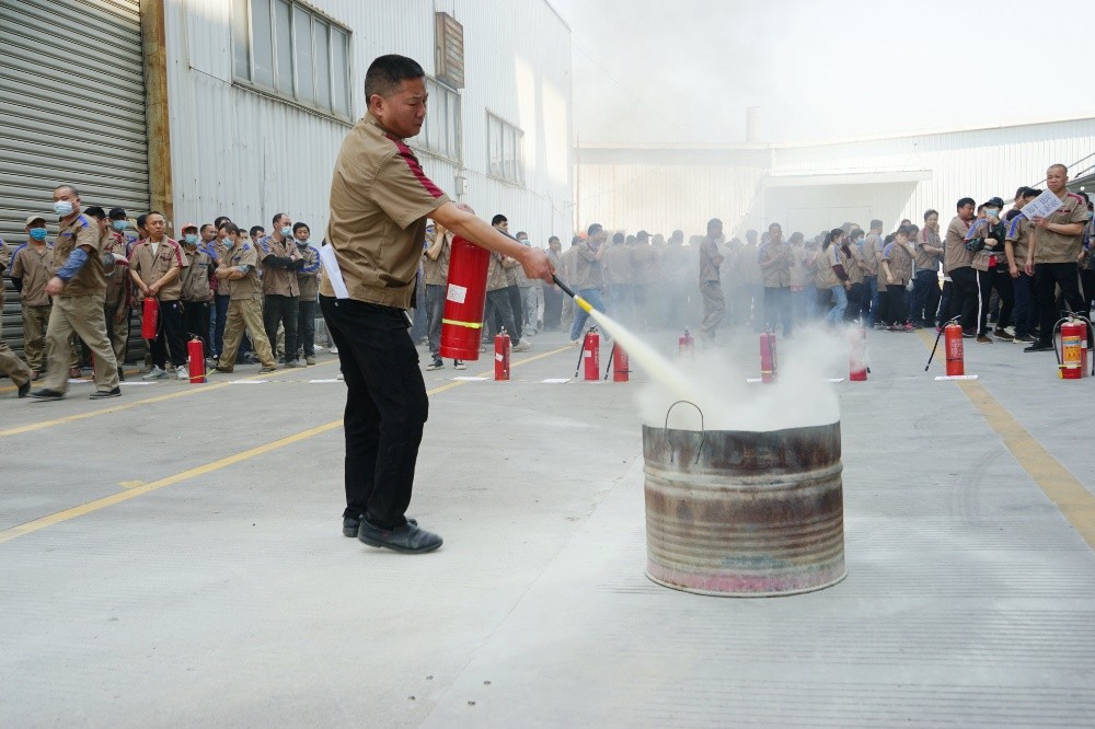 首先由車間主任、班組長(zhǎng)等進(jìn)行操作示范,隨后由新員工們輪流使用滅火器訓(xùn)練,對(duì)不當(dāng)操作進(jìn)行現(xiàn)場(chǎng)糾正,力求使公司每位員工都能熟練掌握滅火技能。