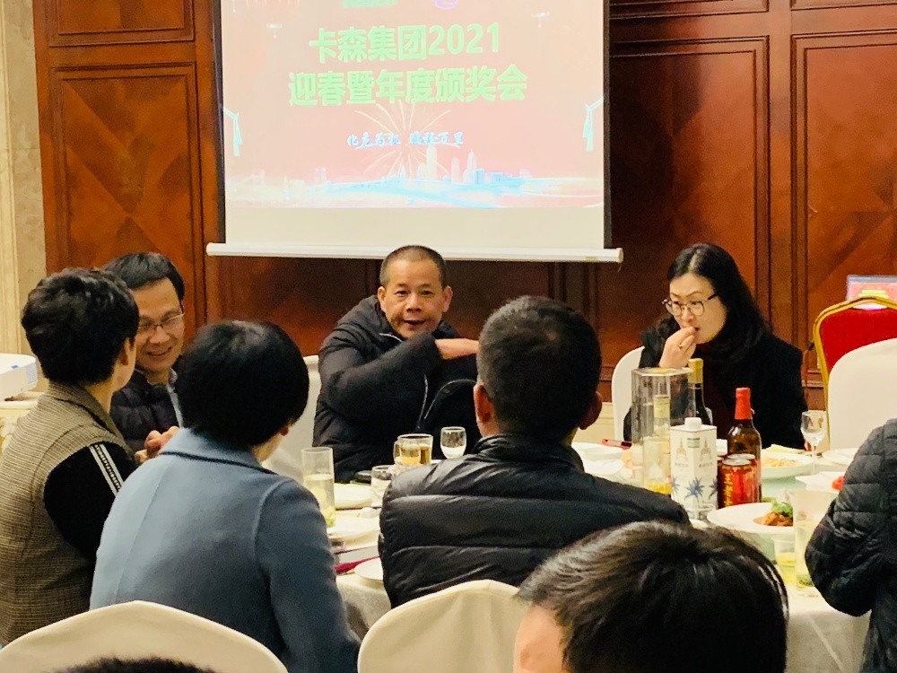 2月5日,卡森集團2021迎春暨年度頒獎會在王庭世家舉行,因疫情原因及防控要求,僅集團部門經理以上及子公司老總等40多人參加晚會,會議在簡樸而熱烈的氣氛中進行。